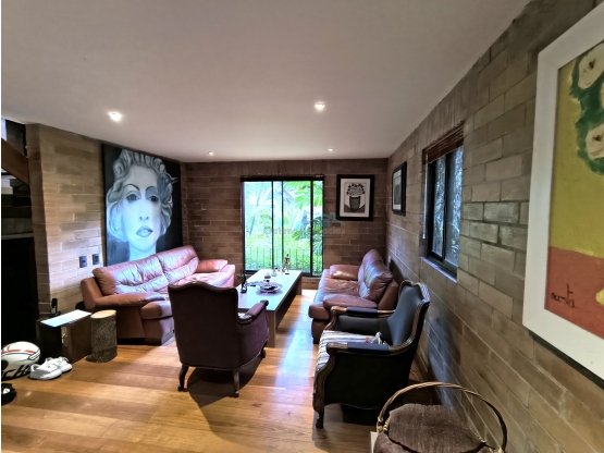 Pesos ColombianosCasa en venta Loma de Las Brujas Envigado. Casa esquinera en tres niveles, distribuida así: primer nivel (79m2): salón comedor de muy buen tamaño, cocina integral abierta, deck de 9m2, baño social. Segundo nivel (62m2): dos alcobas, un baño completo, estudio, tercer nivel (60m2): alcoba principal con estudio o sala de tv, amplio baño. Adicional un nivel con amplia terraza de 22m2 con excelentes vistas, modernas pérgolas diseñadas para que entre luz natural a toda la propiedad. La casa tiene muy buena entrada de luz natural, tanto por las pérgolas como por las ventanas con vistas a verde, buenos acabados. Unidad residencial con muy buenos jardines, parqueaderos de visitantes, portería 24 horas, unidad diseñada para vivir rodeado de naturaleza. Privilegiada ubicación en parte baja de la loma, fácil acceso y movilidad, transporte público cercano, cerca de Euro Guadalcanal. Diseño bioclimático en armonía con el medio ambiente.